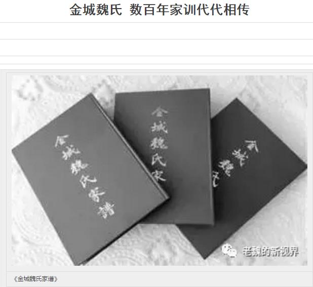 魏永哲告诉记者,魏氏各房都有自己的家谱、家训,虽稍有区别,但中心意思一致:“传承仁爱孝道,崇尚耕读之风,就是弘扬‘正能量’!”